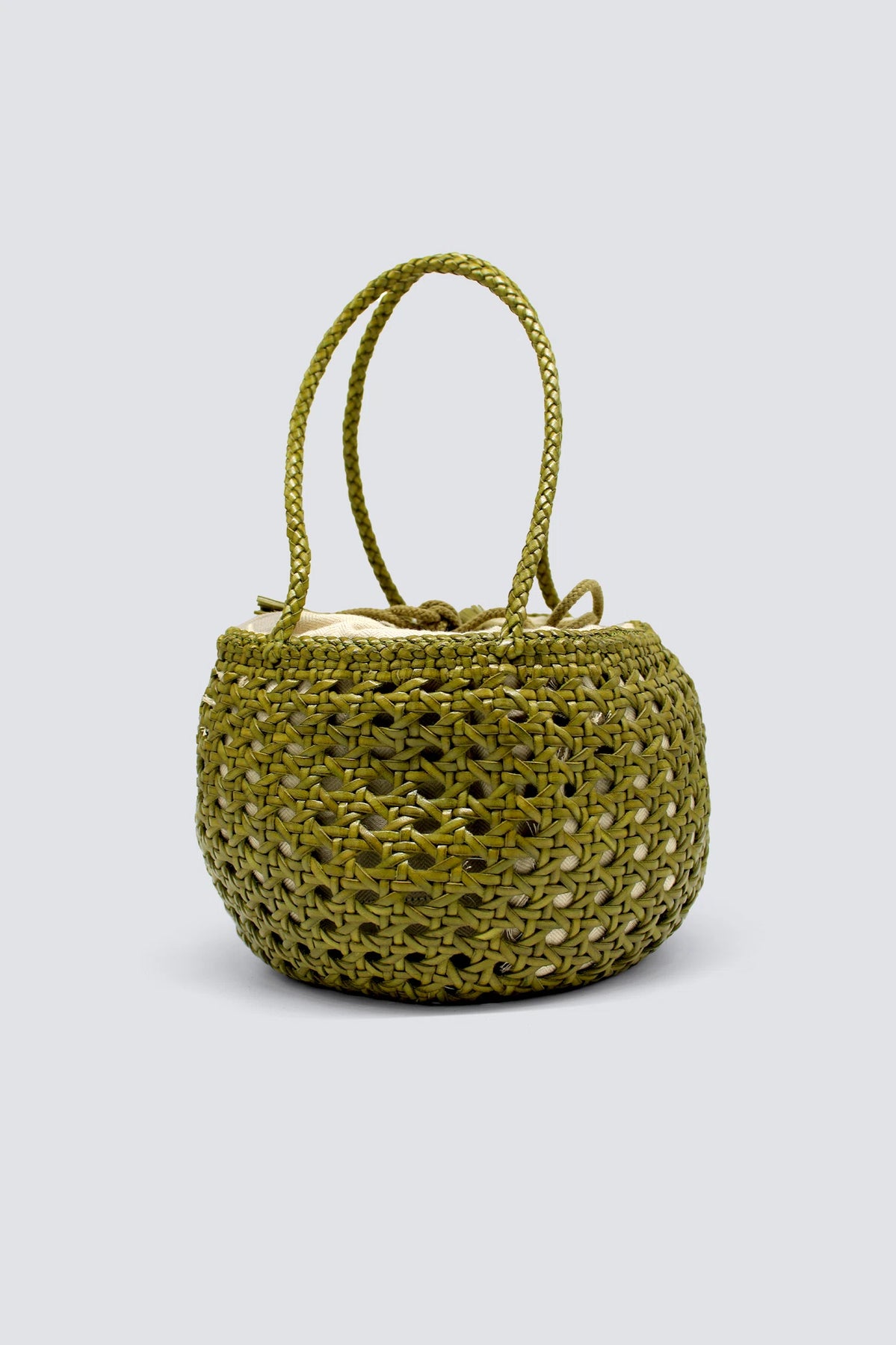 The Juventus is a compact handbag defined by its rounded shape and detailed craftsmanship. Made with a 3.5mm cannage weave, it features a tight, graphic leather pattern that gives the bag structure and character. Inside, a cotton drawstring lining allows you to close the bag and keep your belongings secure while maintaining a relaxed feel. Designed to be carried by hand, the Juventus works for everyday use.