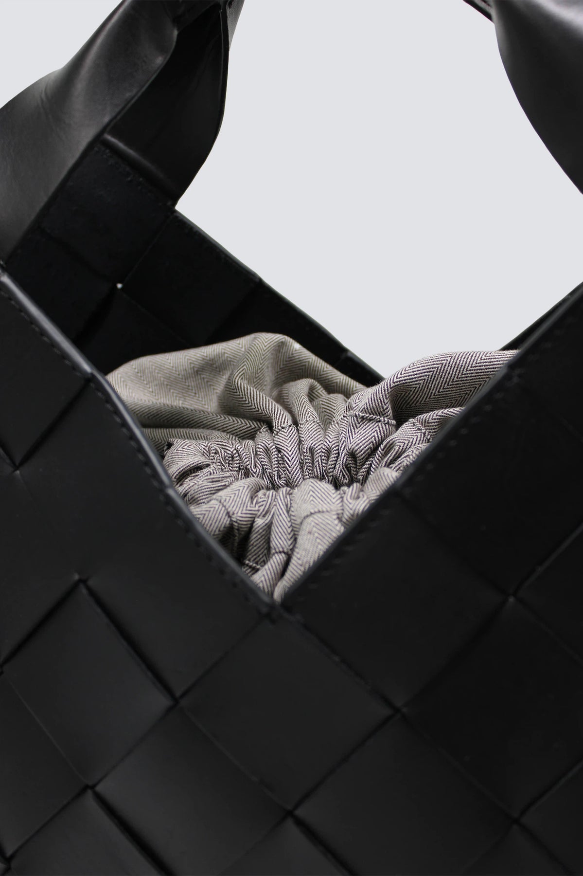 The Botteghe is a compact, hand-held version of the Castello, defined by its strong, structured silhouette. Crafted with wide 4 cm diagonal leather straps, the weave creates a bold, graphic pattern that gives the bag presence despite its smaller size. Designed to be carried by hand, it stands out through its sculptural feel and confident look.