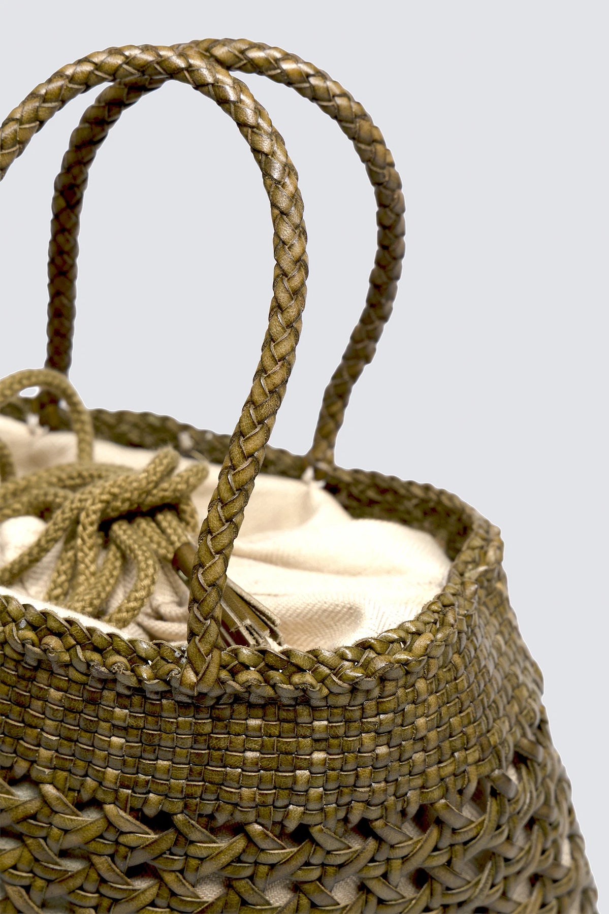 The Santa Cano is a compact handbag defined by its refined craftsmanship and clean shape. Made with a 3.5mm cannage weave, it showcases a tight and structured leather pattern that gives the bag both texture and character. Inside, a cotton drawstring lining allows you to secure your belongings while keeping the look relaxed and effortless. Designed to be carried by hand, the Santa Cano is an elegant yet easy piece, ideal for everyday use or warm-weather outings.